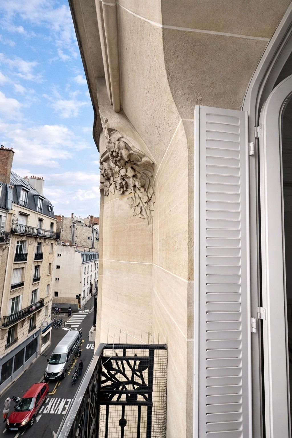 il a conservé tout le charme de l’ancien : belle hauteur sous plafond, moulures, parquet en point de Hongrie et cheminées en marbre.