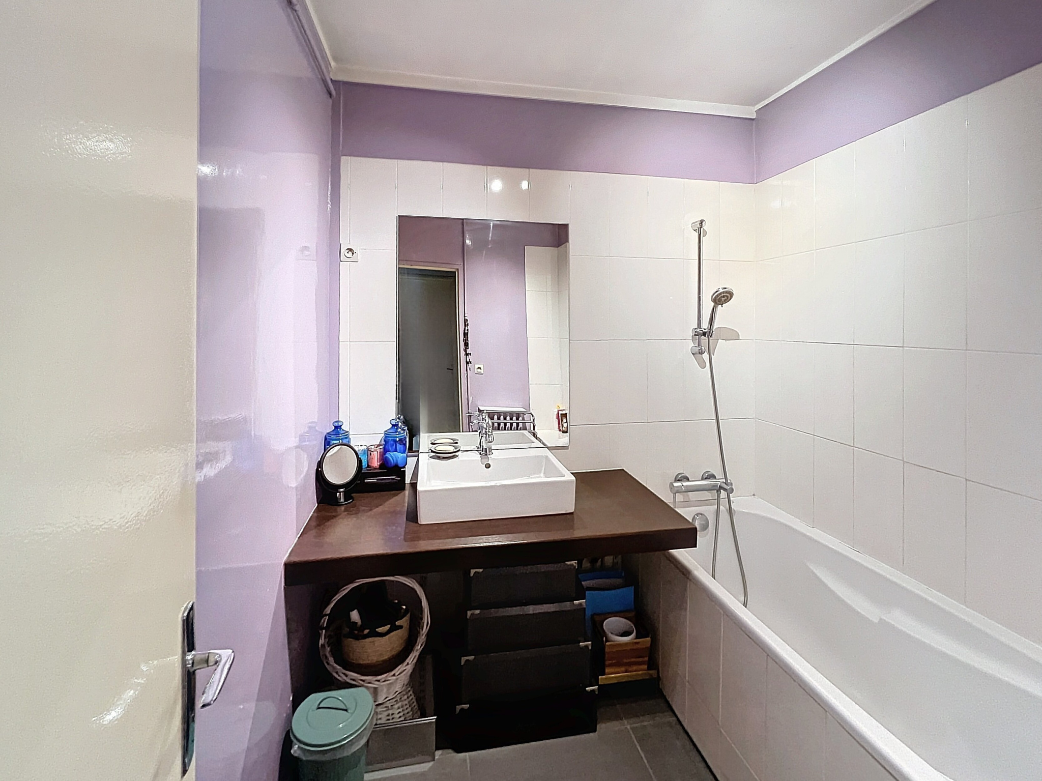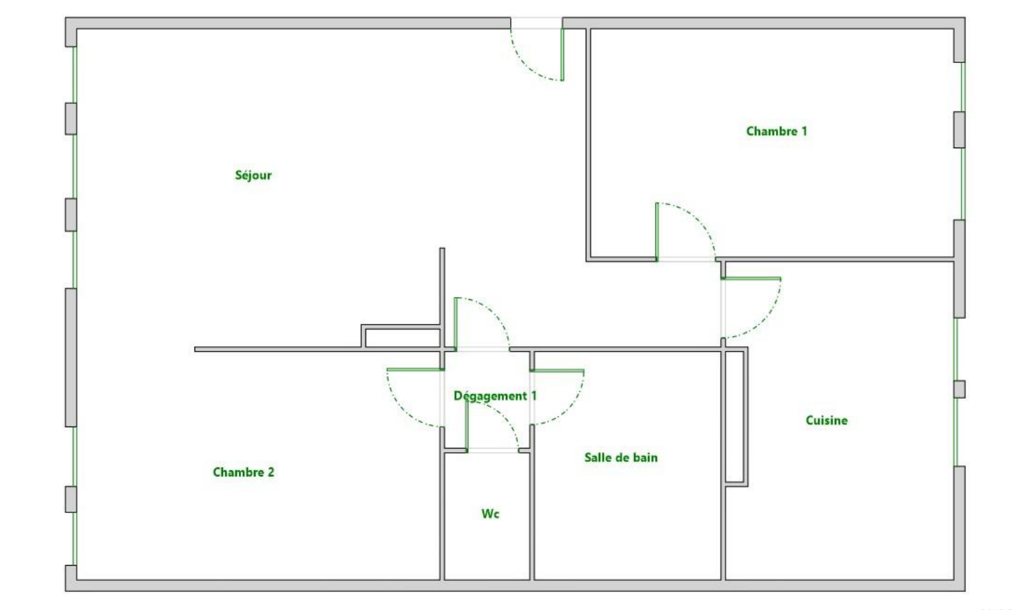 L'appartement traversant se décompose en un salon , 2 chambres, une cuisine séparée, une salle de bain et des wc séparés.